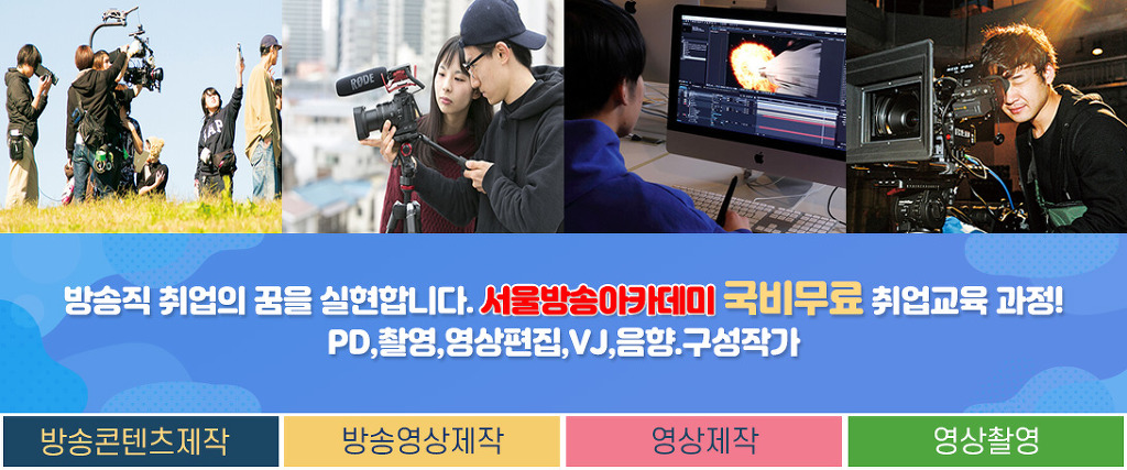 19년 전통의 방송직 취업교육원 서울방송아카데미에서는 연출,촬영,영상편집,구성작가 등