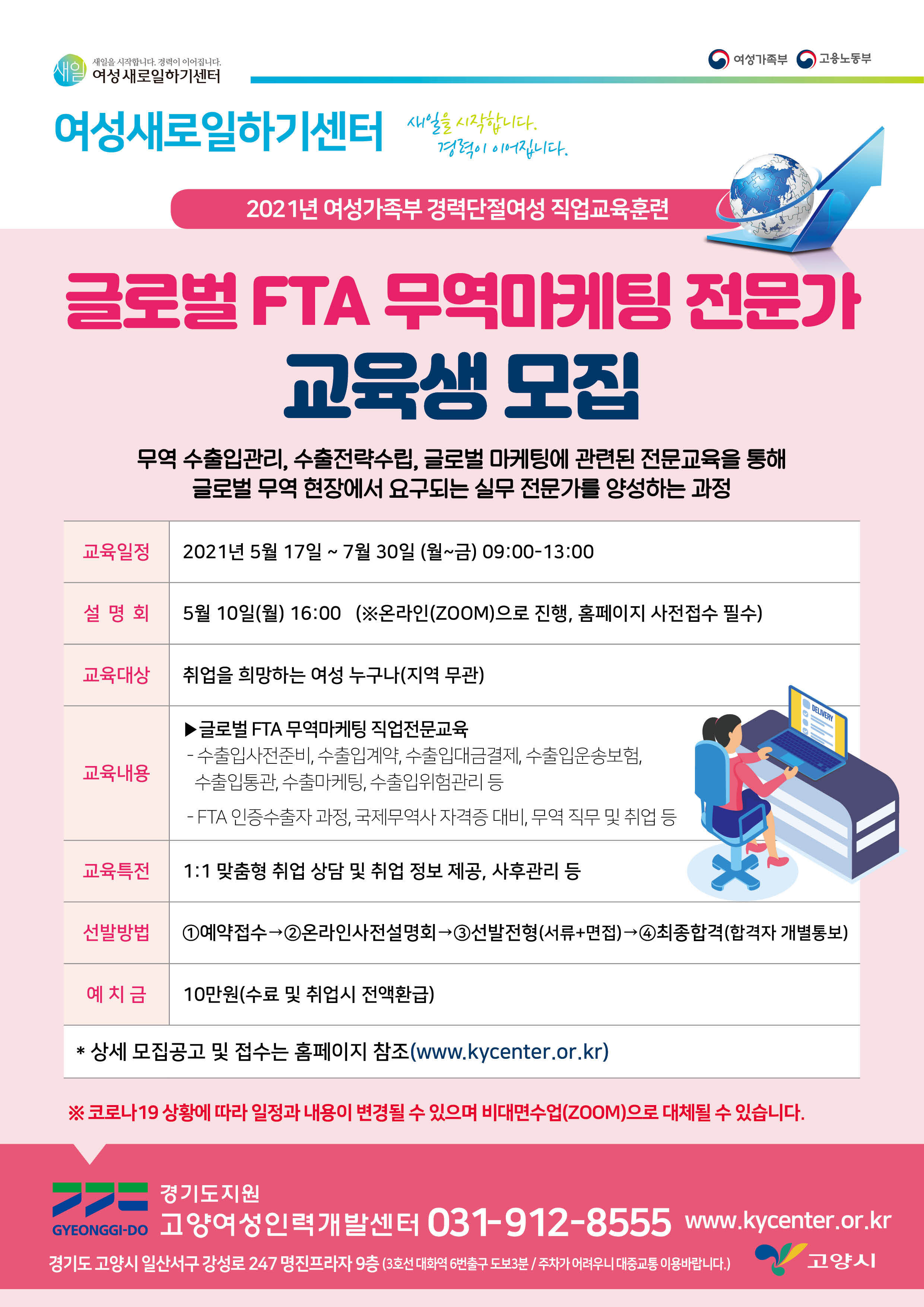 ● 교육장소 : 고양여성인력개발센터 본원 (경기도 고양시 일산서구 강성로 247 명진프라자)