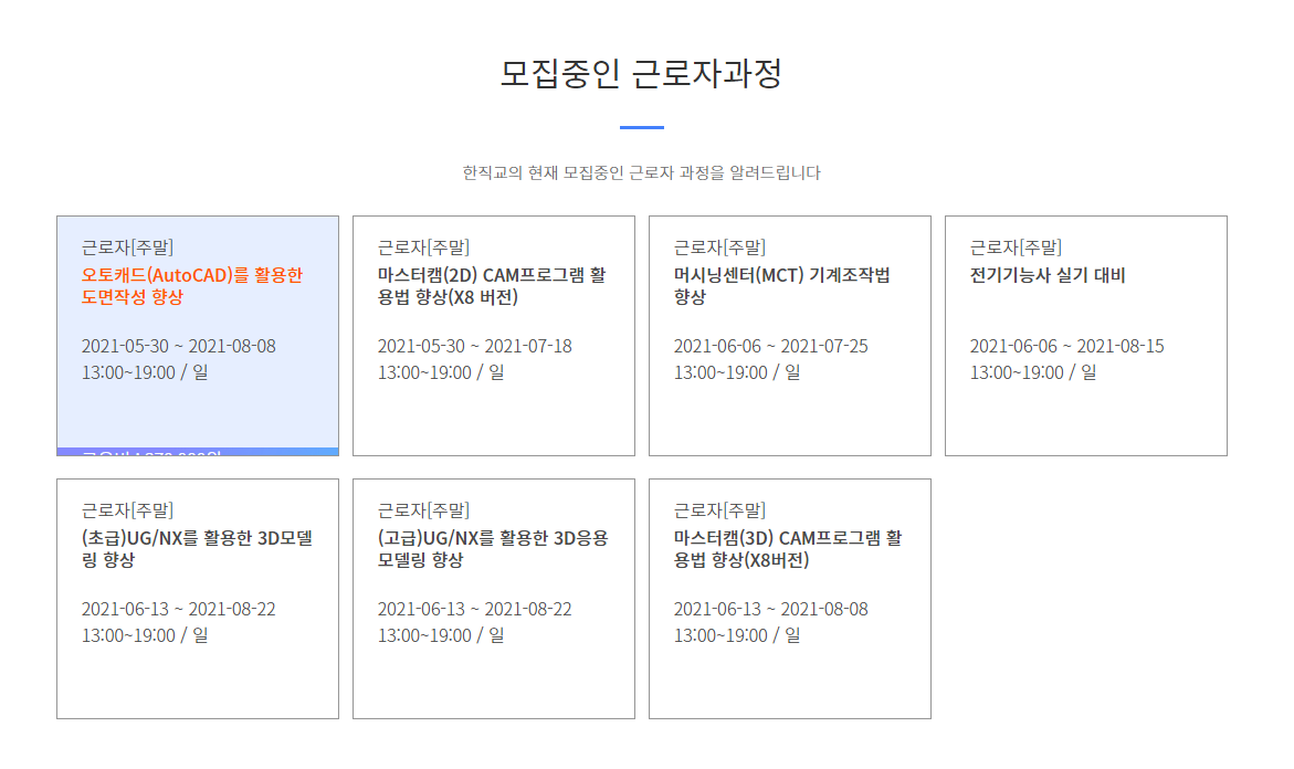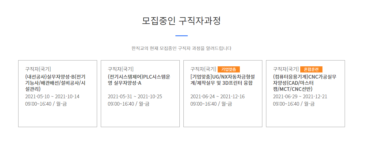 [한직교군포]구직자/재직자 국비지원교육 안내 작성자한국직업능력교육원|작성시간21.05.12|조회수34 목록 댓글 0 글자크기 작게가 글자크기 크게가 다음검색 현재 게시글 추가 기능 열기 북마크 공유하기 신고 센터로 신고 댓글 댓글 0 댓글쓰기 답글쓰기 댓글 리스트