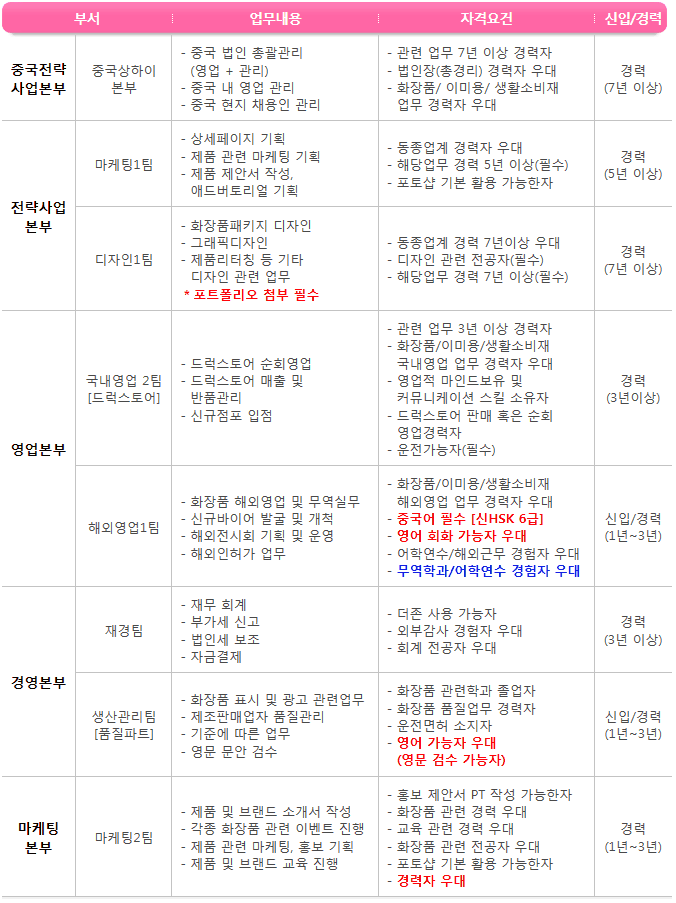 - 각 부문 별로 올바른 인성과 뜨거운 열정, 즐거운 의욕으로 성실하게 직무를 담당할 인재를 모집합니다.