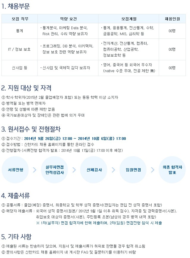[신한카드 채용] 신한카드 채용 2015년 대졸 신입 모집 (9/26~10/6)