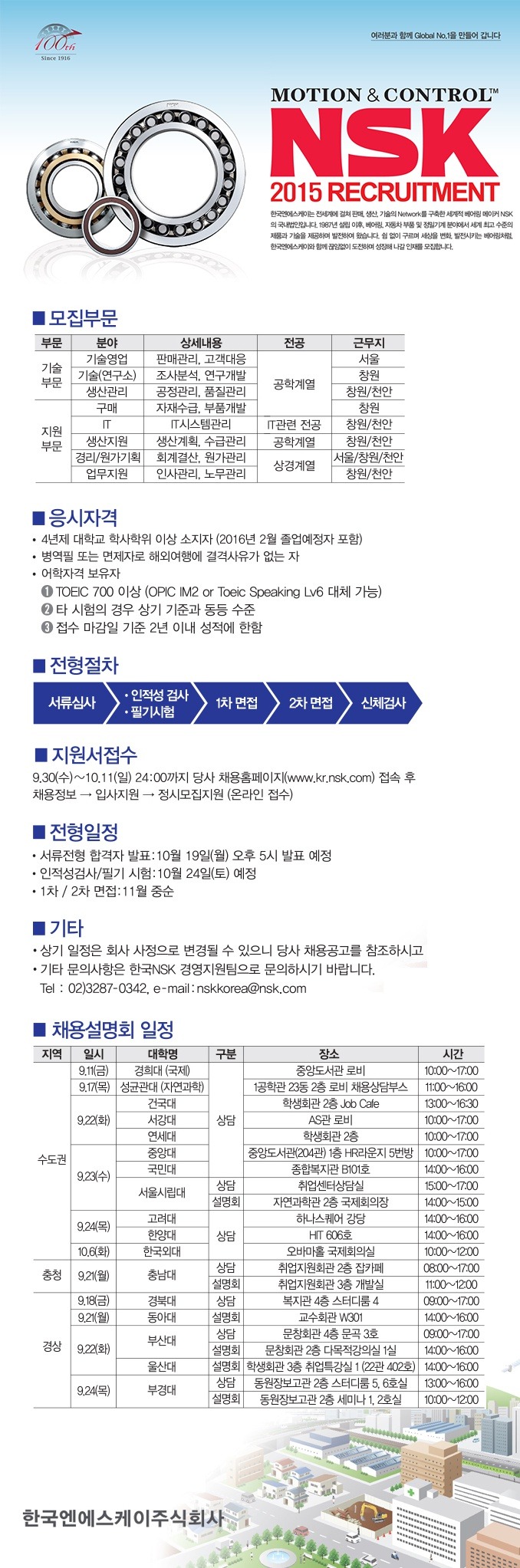 [한국엔에스케이 채용]한국엔에스케이 채용 2015 하반기 신입사원 모집(9/30~10/11)