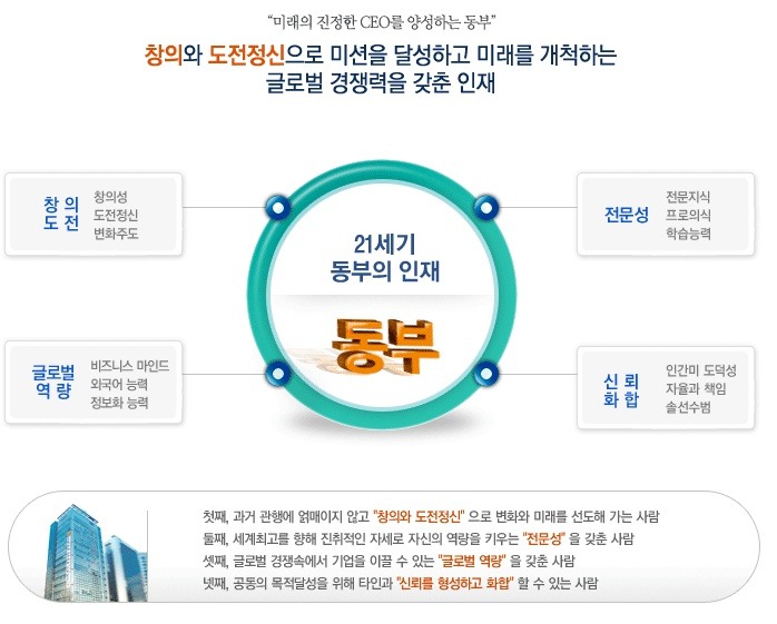 동부생명보험의 추구하는 21세기 인재의 4가지사항을