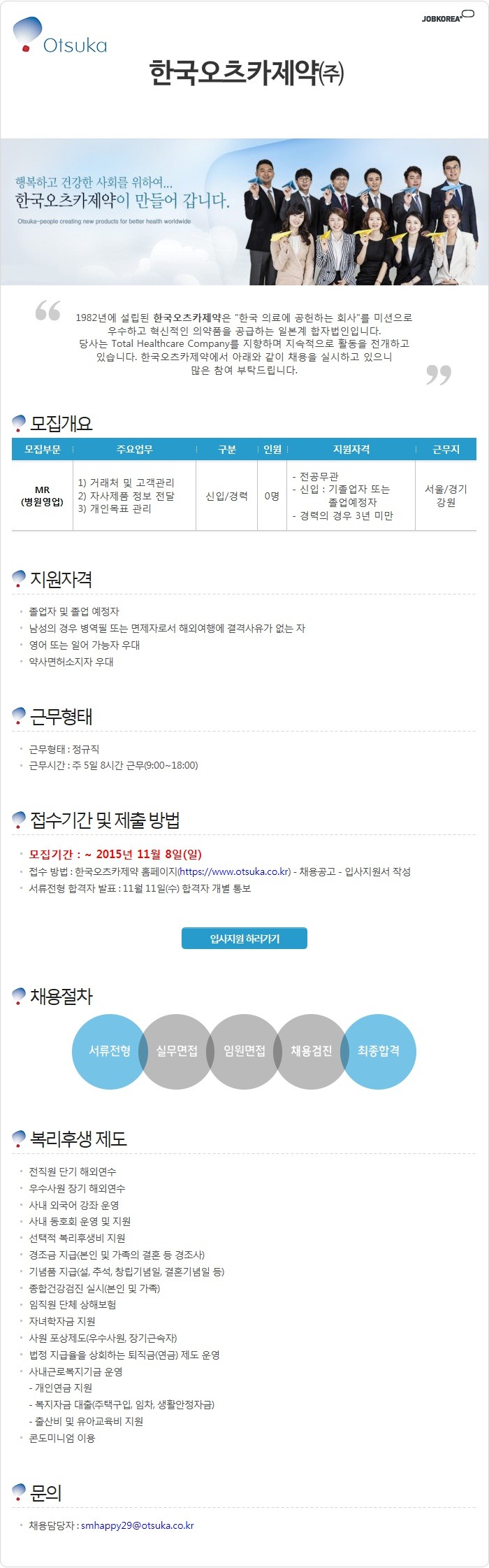 [한국오츠카제약 채용]한국오츠카제약 채용 2015 하반기 신입 및 경력사원 모집(10/28~11/8)