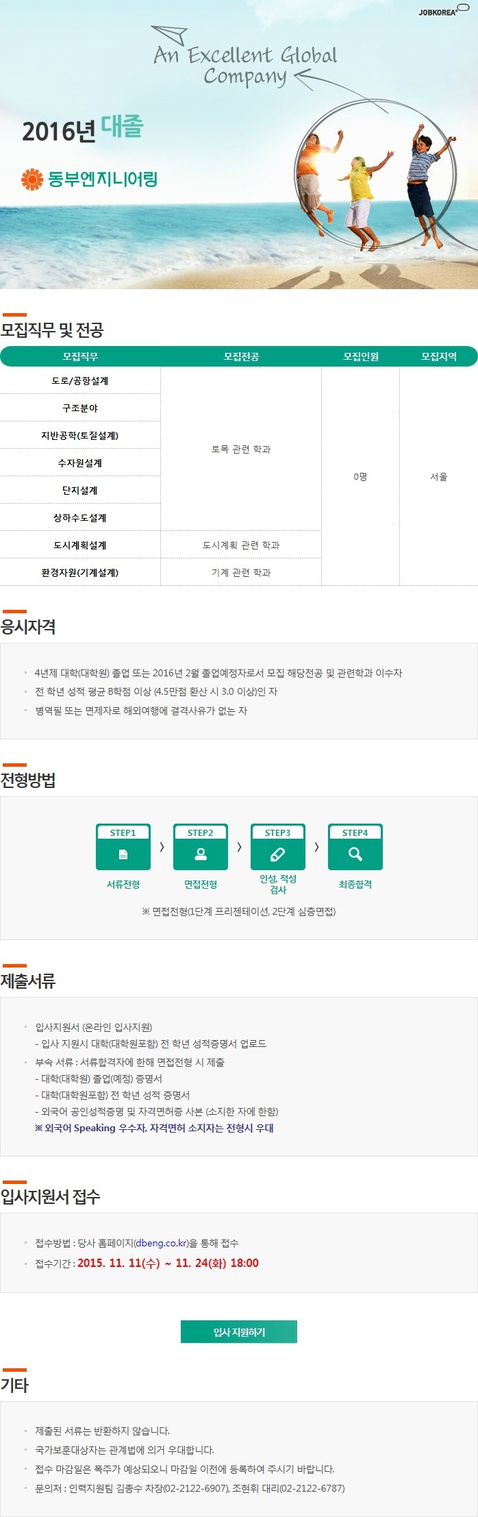 동부엔지니어링 채용 2016 상반기 신입사원 모집이며,