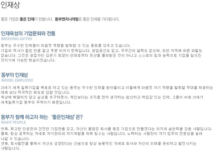 -동부엔지니어링 채용 인재상-