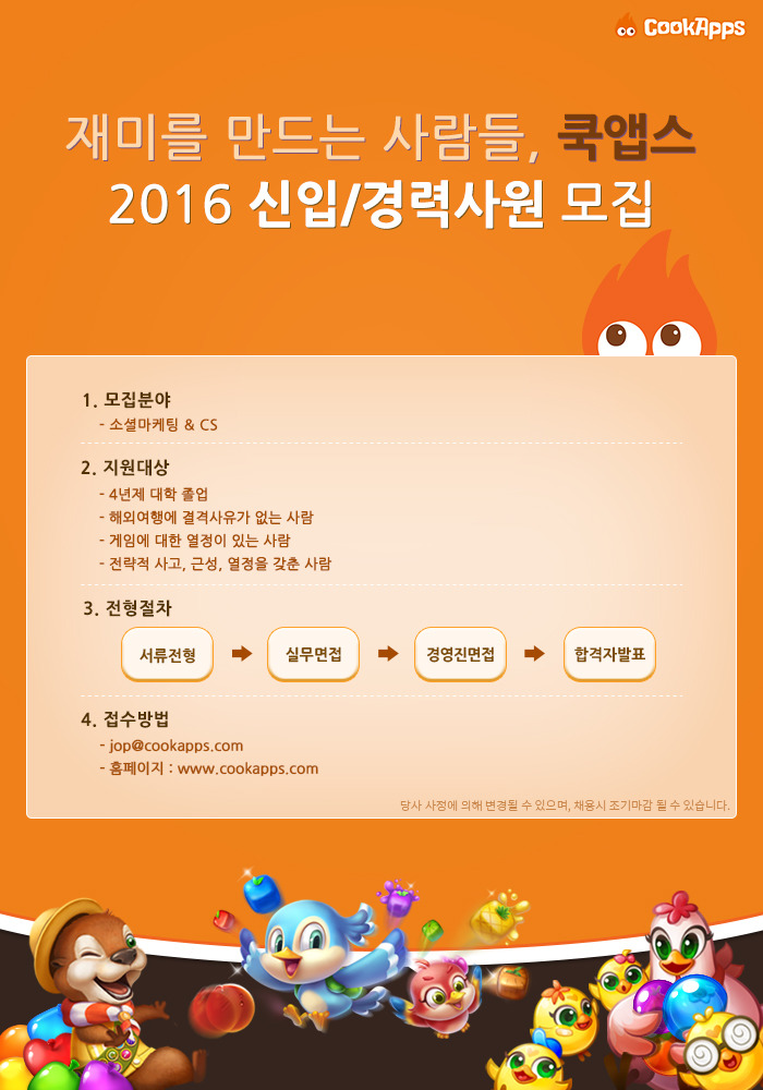 - 이메일 접수 : job@cookapps.com