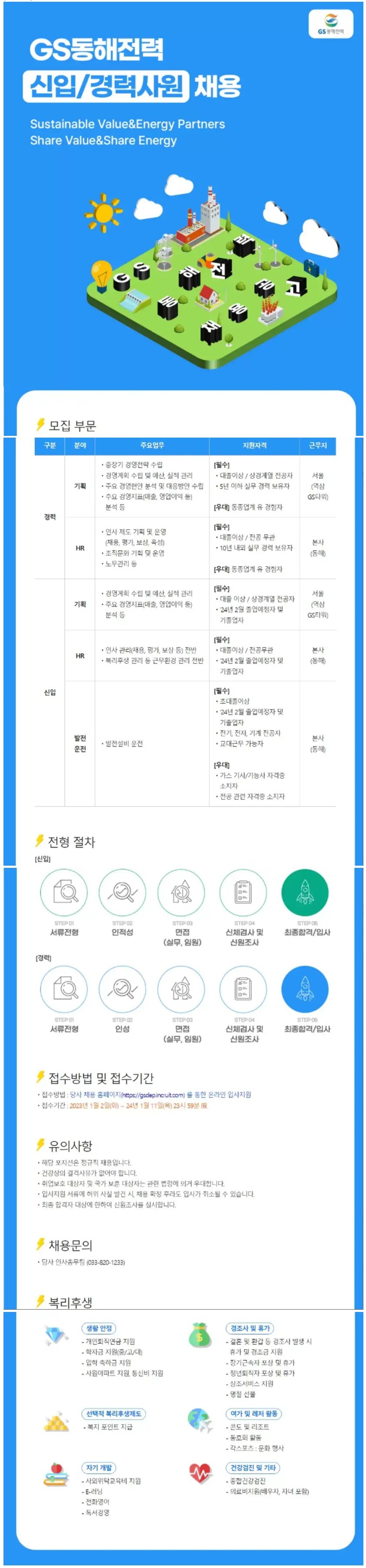 [GS동해전력] 신입/경력사원 채용 (~1/11) 작성자취뽀 I 스탭 01|작성시간24.01.04|조회수64 목록 댓글 0 글자크기 작게가 글자크기 크게가 [GS동해전력] 신입/경력사원 채용 (~1/11) 📌접수기간 : 24.1.3(수)~ 24.1.11(목) 📌고용형태 : 정규직📌접수방법 : 홈페이지 지원📌지원하기 : (클릭) 다음검색 현재 게시글 추가 기능 열기 북마크 공유하기 신고 센터로 신고 댓글 댓글 0 댓글쓰기 답글쓰기 댓글 리스트