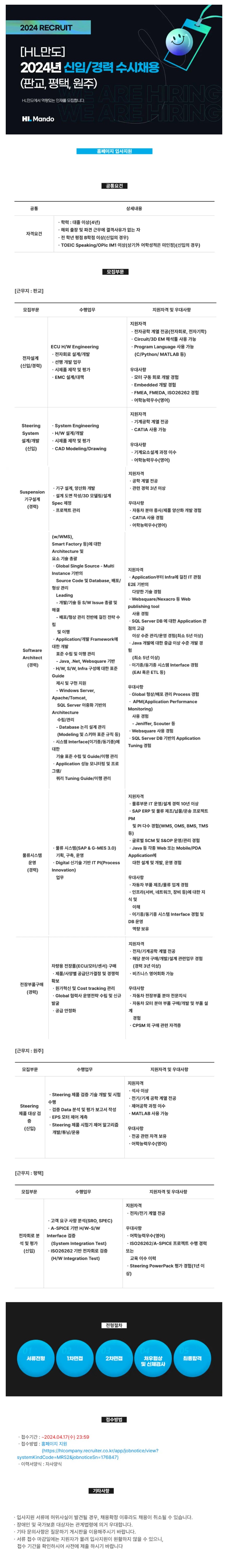 [HL만도] 2024년 4월 신입/경력 수시채용 (~4/17) 작성자취뽀 I 스탭 01|작성시간24.04.04|조회수29 목록 댓글 0 글자크기 작게가 글자크기 크게가 [HL만도] 2024년 4월 신입/경력 수시채용 (~4/17) 📌접수기간 : 24.4.3(수)~ 24.4.17(수) 📌고용형태 : 정규직📌접수방법 : 홈페이지 지원📌지원하기 : (클릭) 다음검색 현재 게시글 추가 기능 열기 북마크 공유하기 신고 센터로 신고 댓글 댓글 0 댓글쓰기 답글쓰기 댓글 리스트