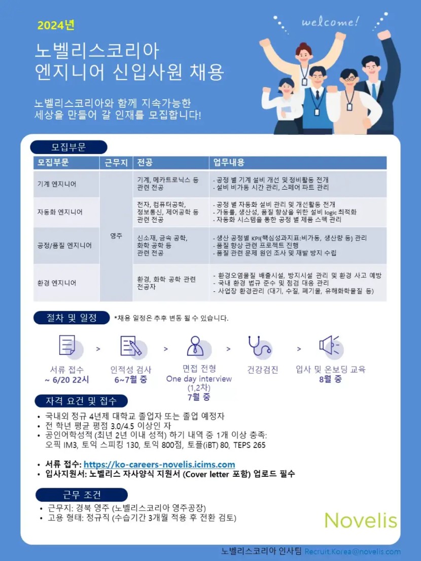 [노벨리스코리아] 하반기 각 부문 채용 (~6/20) 작성자취뽀 I 스탭 01|작성시간24.05.21|조회수81 목록 댓글 0 글자크기 작게가 글자크기 크게가 [노벨리스코리아] 하반기 각 부문 채용 (~6/20) 📌접수기간 : 24.5.20(월)~ 24.6.20(목) 📌고용형태 : 정규직📌접수방법 : 홈페이지 지원📌지원하기 : (클릭) 다음검색 현재 게시글 추가 기능 열기 북마크 공유하기 신고 센터로 신고 댓글 댓글 0 댓글쓰기 답글쓰기 댓글 리스트