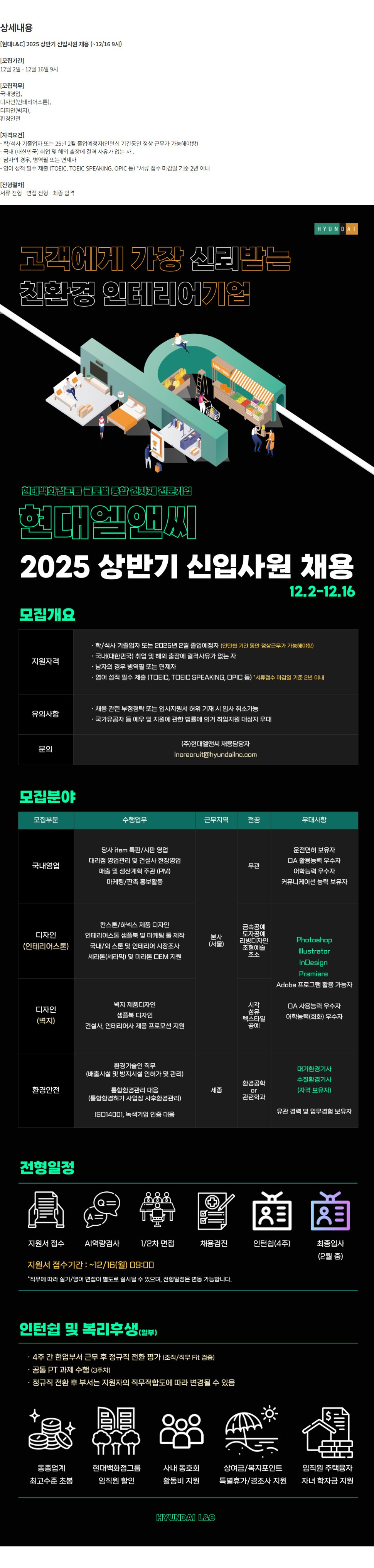 [현대L&C] 2025 상반기 신입사원 채용 (~12/16) 작성자취뽀 I 스탭 01|작성시간24.12.02|조회수47 목록 댓글 0 글자크기 작게가 글자크기 크게가 [현대L&C] 2025 상반기 신입사원 채용 (~12/16)📌접수기간 : 24.12.02(월)~ 24.12.16(월) 📌고용형태 : 정규직📌접수방법 : 홈페이지 지원📌지원하기 : (클릭) 다음검색 현재 게시글 추가 기능 열기 북마크 공유하기 신고 센터로 신고 댓글 댓글 0 댓글쓰기 답글쓰기 댓글 리스트