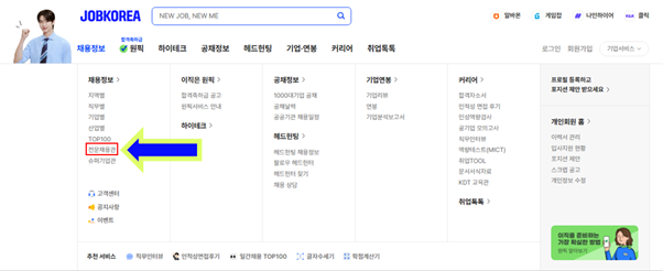 잡코리아 사이트에 접속 후 채용정보 → 전문채용관으로 들어갑니다