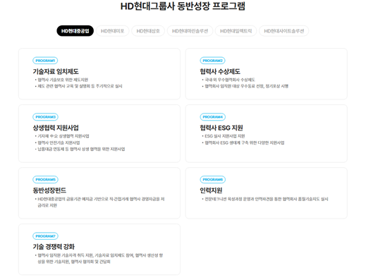 각 그룹사 별로 다른 동반성장 프로그램으로 협력회사의 성장을 지원하고 있어요!
