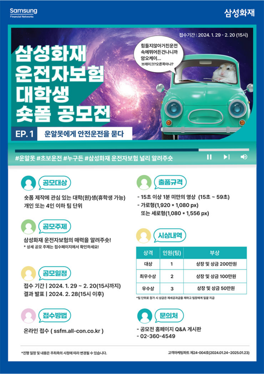 [삼성화재] 삼성화재 운전자보험 대학생 숏폼 공모전 (~02/20)