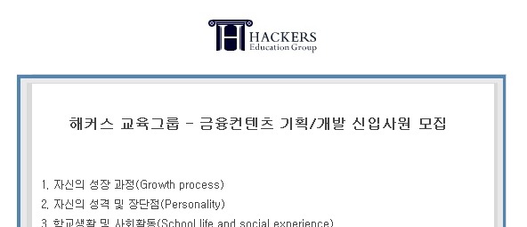 해커스 교육그룹 - 금융컨텐츠 기획/개발 신입사원 모집자소서 항목(~8/12 월 )