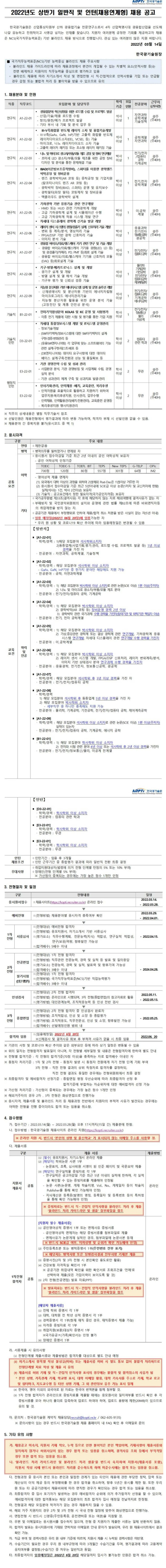 [한국광기술원] 2022년 상반기 일반직 및 채용연계형 인턴 채용 (~03/28)