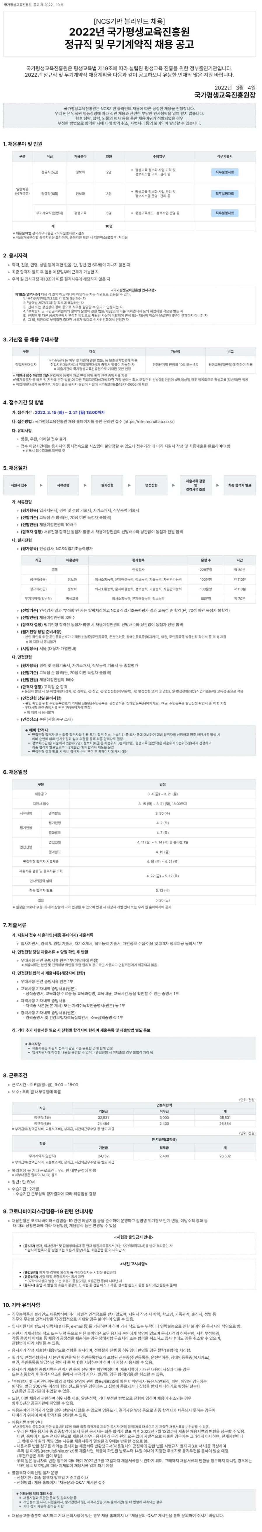 [국가평생교육진흥원] 2022년 정규직 및 무기계약직 채용 (~03/21)