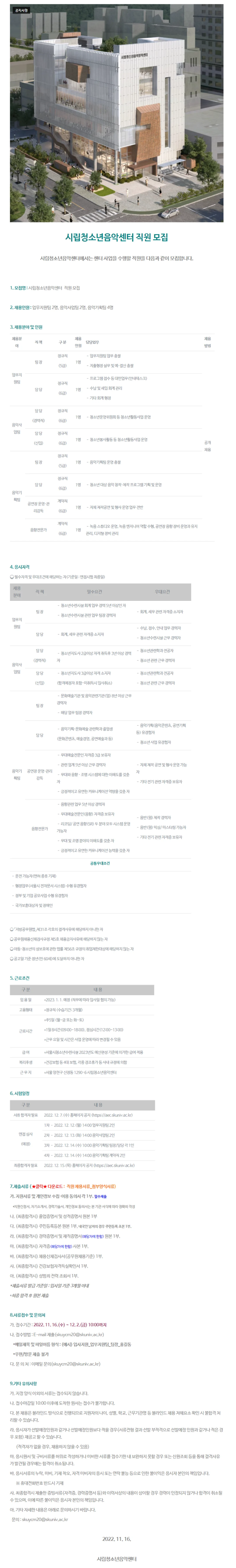 [시립청소년음악센터] 2022년 제6차 각 분야별 직원 채용 (~12/02)
