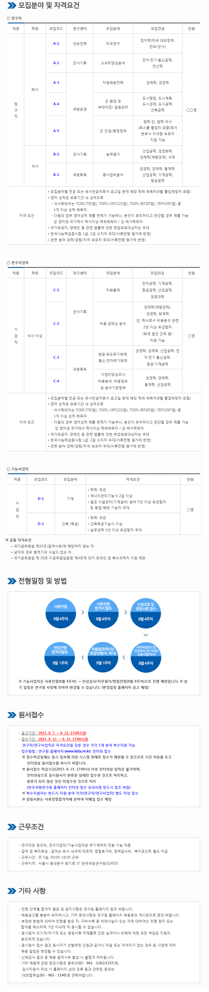 한국국방연구원 채용 2015 직원 모집이며,