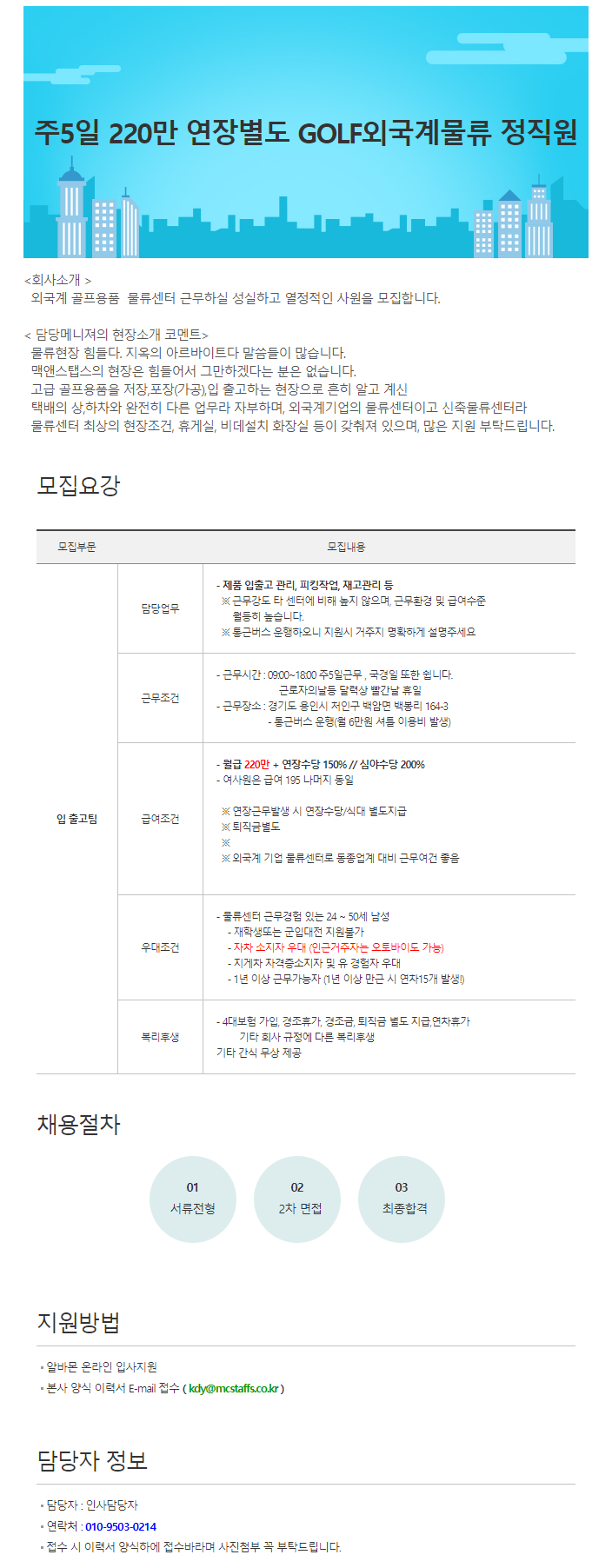 [경기 용인시 처인구] (주5일 / 월 220이상 / 남직원 우대]) 골프용품 물류센터 사원 모집 / 통근버스 (~05/25)