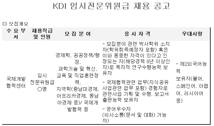 한국개발연구원 채용 :: 한국개발연구원(KDI) 임시전문위원급 채용 공고(~05/06)