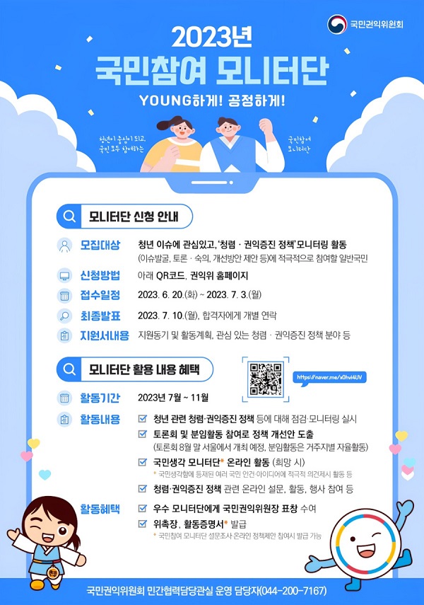 [국민권익위원회] 2023년 국민참여모니터단 모집 (~07/03)