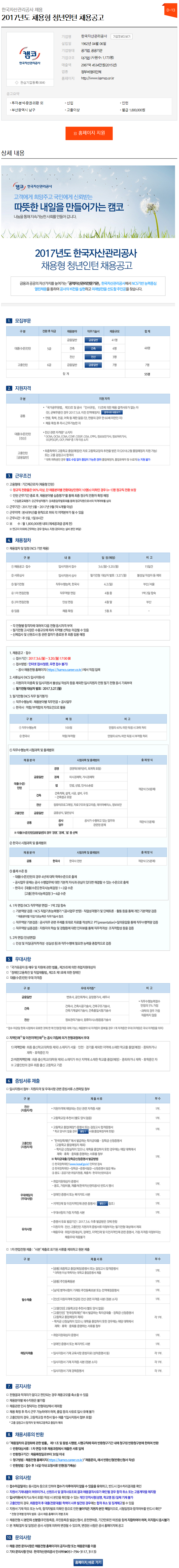 [한국자산관리공사] 2017년도 채용형 청년인턴 채용공고