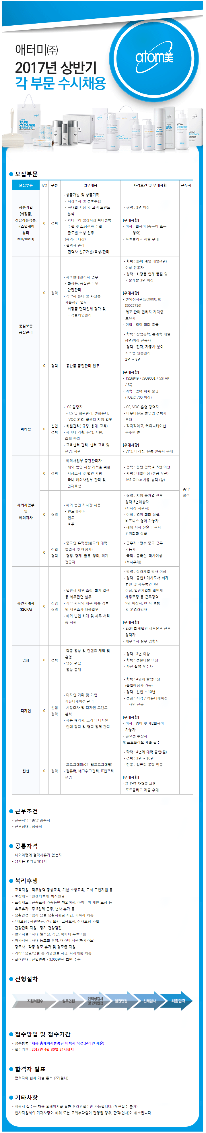 [애터미(주) 채용] 2017년 상반기 각 부문 수시채용