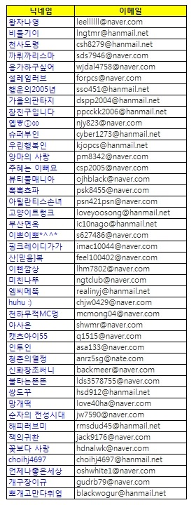 아래 당첨자 내역과 본인의 이메일 확인 부탁드립니다.