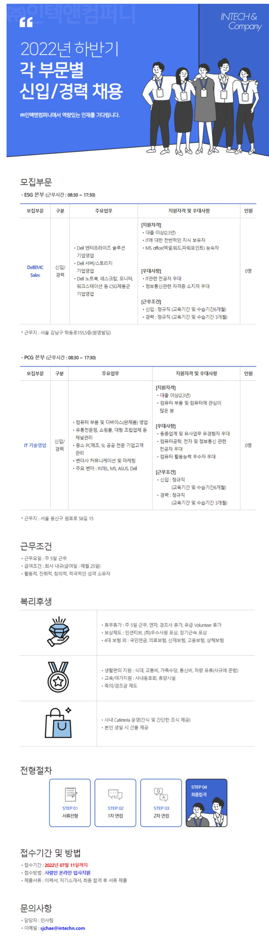 [인텍앤컴퍼니] 2022년 하반기 신입/경력 채용 (~07/11) 작성자취뽀 I 스탭 02|작성시간22.06.29|조회수12 목록 댓글 0 글자크기 작게가 글자크기 크게가 [인텍앤컴퍼니] 2022년 하반기 신입/경력 채용 (~07/11) 📌접수기간 : 22.06.27(월)~ 22.07.11(월)📌고용형태 : 신입,경력📌접수방법 : 홈페이지 지원📌지원하기 : (클릭) 다음검색 현재 게시글 추가 기능 열기 북마크 공유하기 신고 센터로 신고 댓글 댓글 0 댓글쓰기 답글쓰기 댓글 리스트