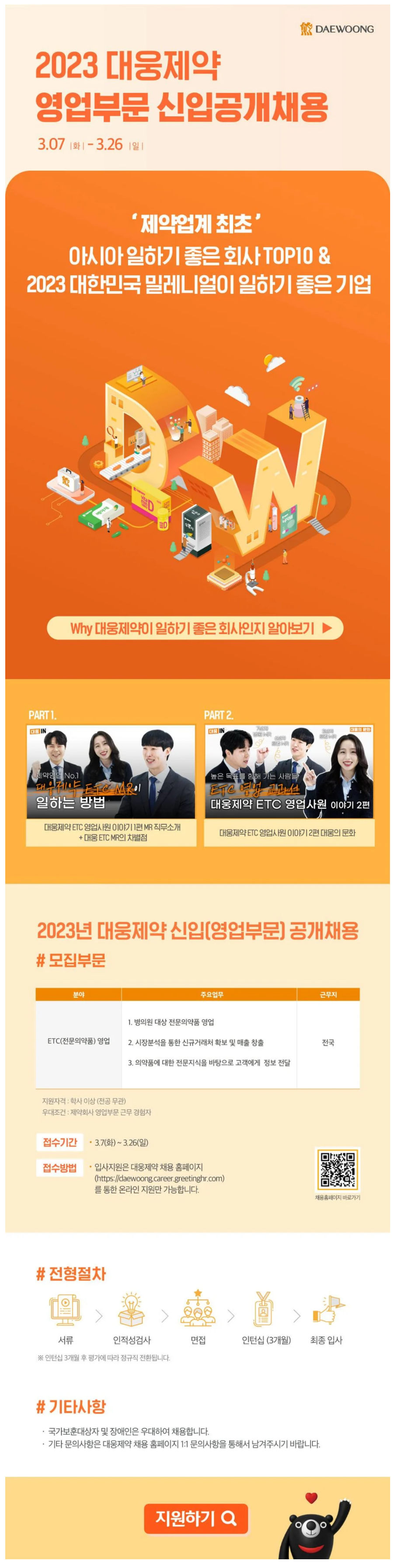 [대웅제약] 2023 대웅제약 영업부문 신입 공개채용 (~03/26) 작성자취뽀 I 스탭 02|작성시간23.03.07|조회수11 목록 댓글 0 글자크기 작게가 글자크기 크게가 [대웅제약] 2023 대웅제약 영업부문 신입 공개채용 (~03/26) 📌접수기간 : 23.03.07(화)~ 23.03.26(일)📌고용형태 : 신입📌접수방법 : 홈페이지 지원📌지원하기 : (클릭) 다음검색 현재 게시글 추가 기능 열기 북마크 공유하기 신고 센터로 신고 댓글 댓글 0 댓글쓰기 답글쓰기 댓글 리스트