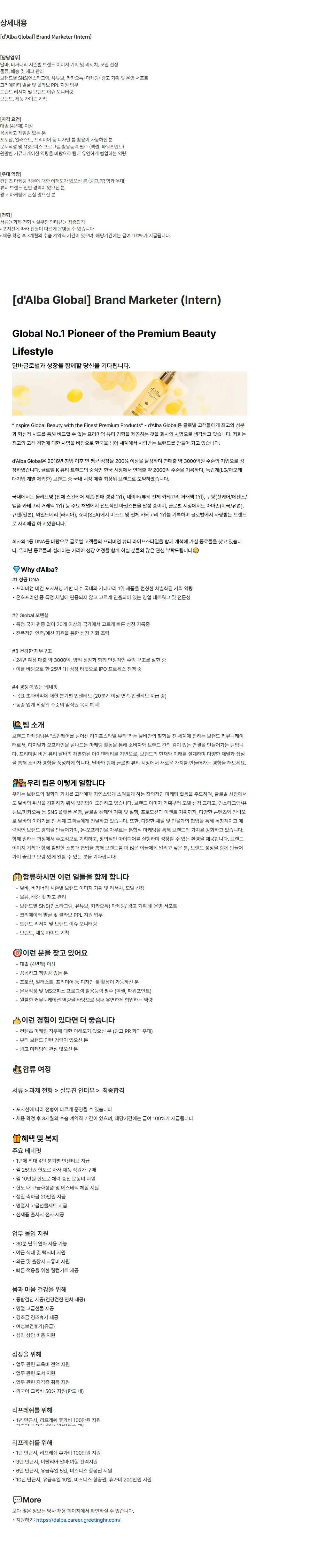 [달바글로벌] Brand Marketer (Intern) 모집 (~채용 시 마감)