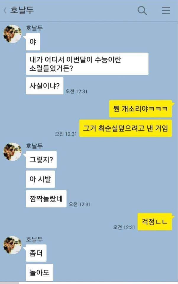 야 이번달에 수능이라던데 사실이야???? 작성자쓰루펀처|작성시간16.11.04|조회수149 목록 댓글 0 글자크기 작게가 글자크기 크게가 휴우 깜짝놀랐네 다음검색 현재 게시글 추가 기능 열기 북마크 공유하기 신고 센터로 신고 댓글 댓글 0 댓글쓰기 답글쓰기 댓글 리스트