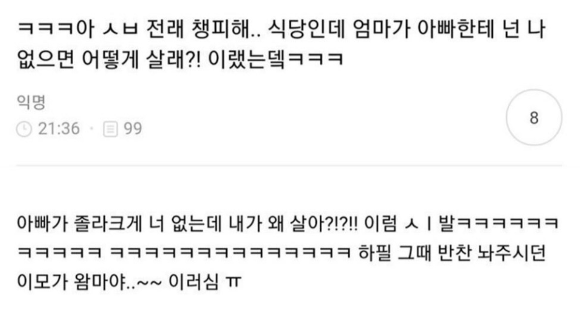 넌 나 없으면 어떻게 살래?! 작성자우우링|작성시간23.12.21|조회수15,319 목록 댓글 1 글자크기 작게가 글자크기 크게가 ㅋㅋㅋㅋㅋㅋㅋㅋㅋㅋㅋㅋㅋㅋㅋㅋㅋㅋㅋㅋㅋㅋㅋㅋㅋㅋㅋㅋ왐마야..~~~ 다음검색 현재 게시글 추가 기능 열기 북마크 공유하기 신고 센터로 신고 댓글 댓글 1 댓글쓰기 답글쓰기 댓글 리스트 작성자군밤장수 | 작성시간 23.12.21 아 ㅠㅠㅠㅠㅠ 스윗 ㅠㅠㅠㅠ 댓글 전체보기