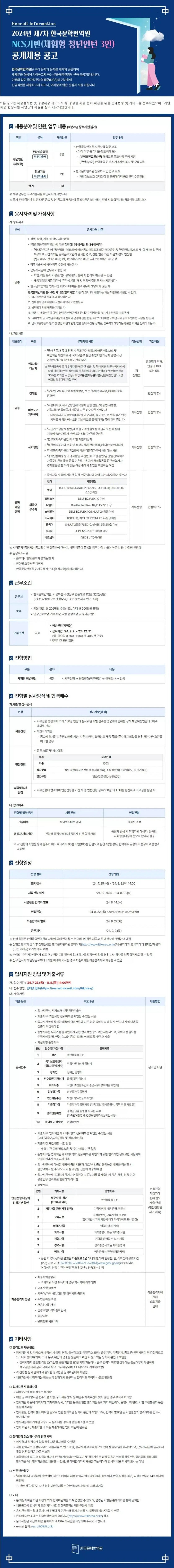[한국문학번역원] 2024년 제7차 NCS기반 체험형 청년인턴 공개채용 (~08/08)
