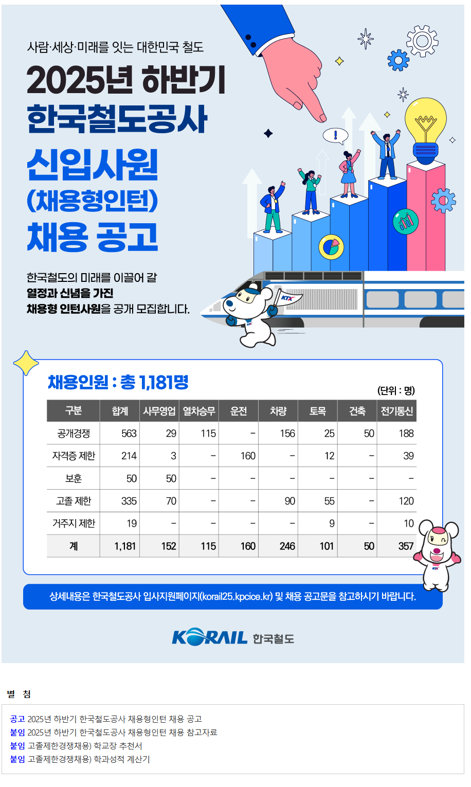 [한국철도공사] 2025년 하반기 신입사원(채용형인턴) 채용 공고(~08.26)