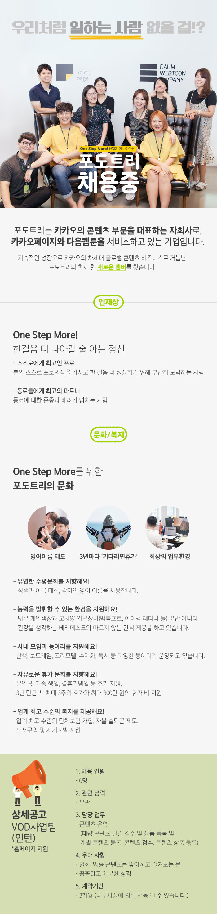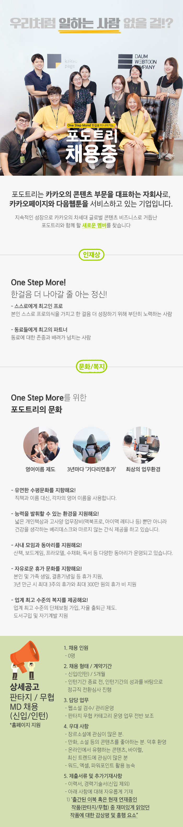[포도트리] VOD사업, 판타지/무협MD, 만화MD 인턴 모집 (~11/30) 작성자해피래빗 인사담당자|작성시간17.11.24|조회수39 목록 댓글 0 글자크기 작게가 글자크기 크게가 포도트리VOD사업팀/ 인턴 만화MD/ 신입 인턴 판타지, 무협MD/ 신입 인턴 다음검색 현재 게시글 추가 기능 열기 북마크 공유하기 신고 센터로 신고 댓글 댓글 0 댓글쓰기 답글쓰기 댓글 리스트