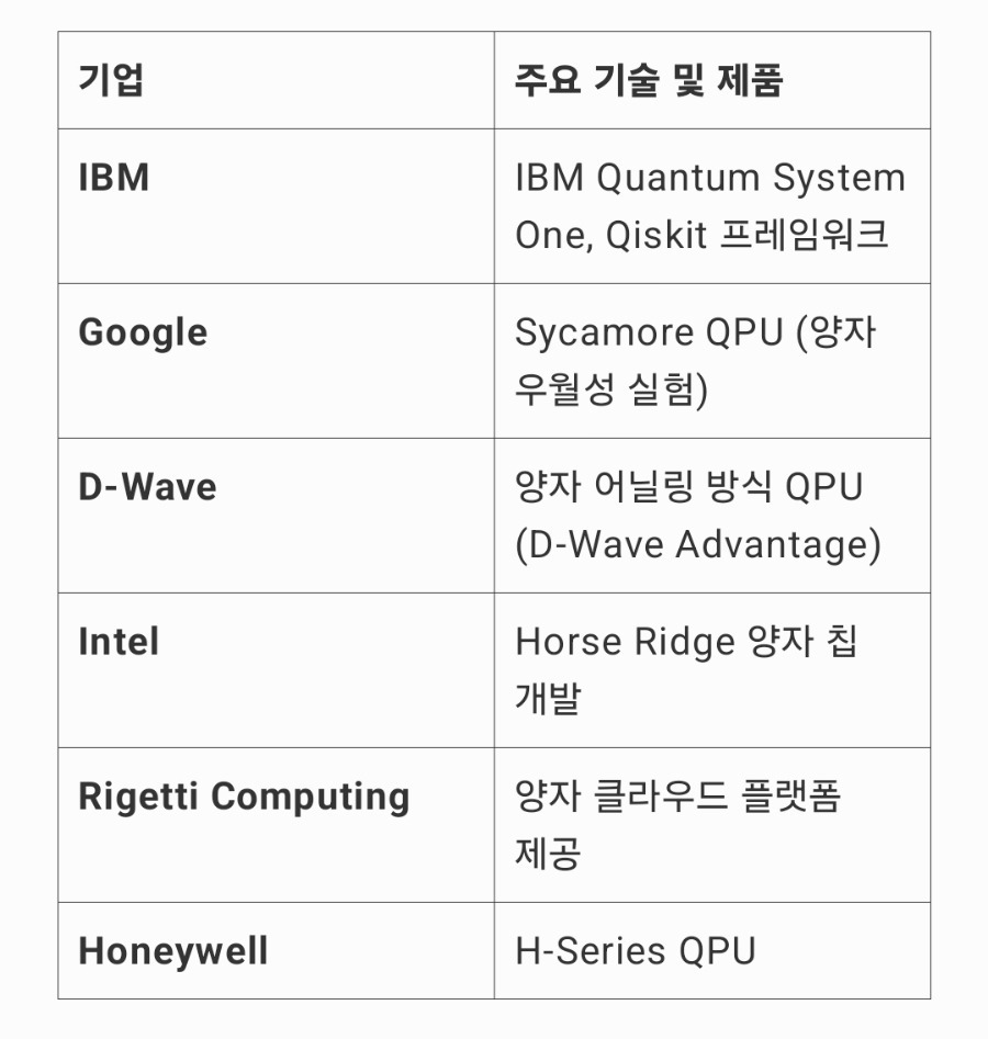 현재 QPU 개발을 선도하는 주요 기업 및 연구소는 다음과 같습니다.