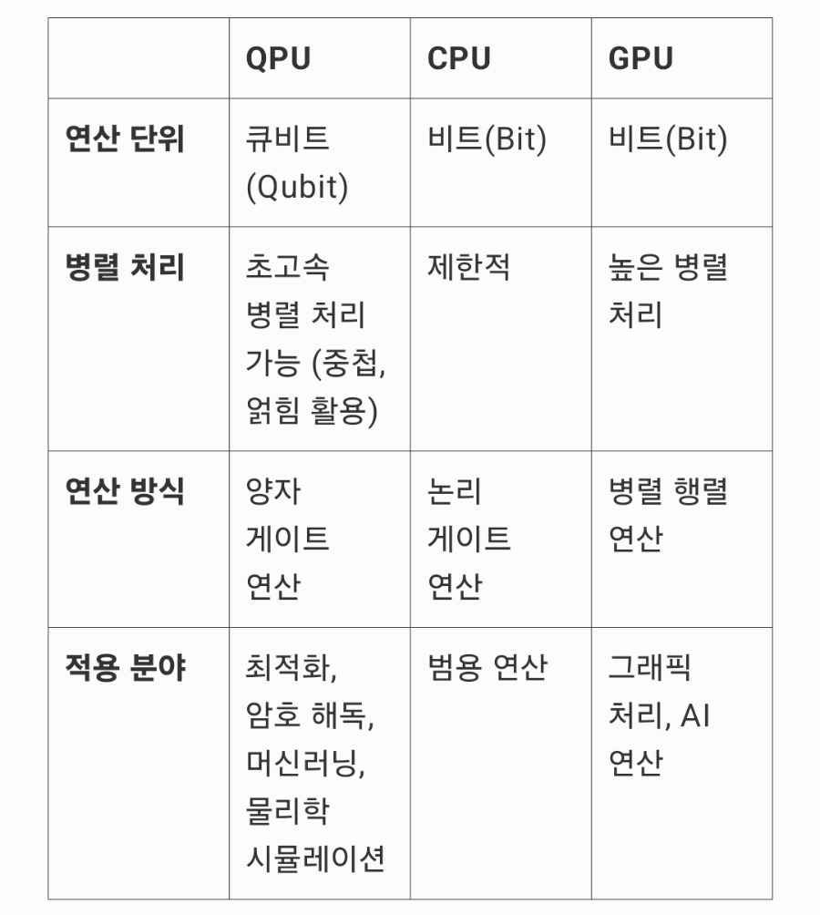 QPU는 기존 컴퓨터로 해결하기 어려운 복잡한 문제를 혁신적으로 해결할 수 있는 기술로, 양자 암호, 금융, 최적화, 신소재 개발 등 다양한 분야에서 중요한 역할을 할 것으로 기대됩니다.