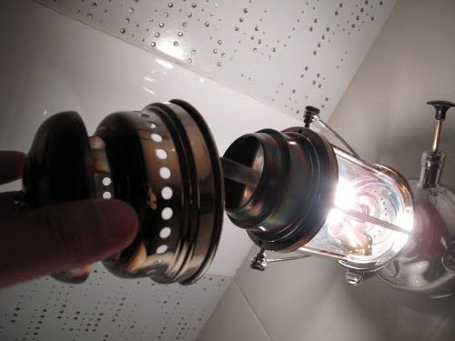 랜턴에 후드를 장착하고 불을 붙이면 믹싱튜브가 달아올라 빨게지면서 1~2분후에 불이 죽어요