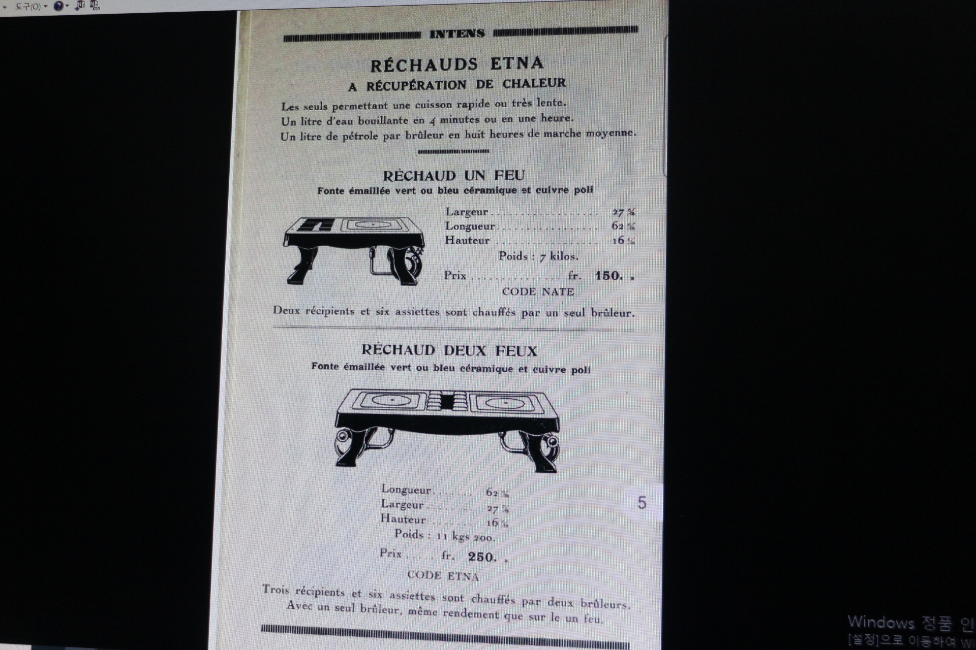 내 마지막 사진은 1928 년에 나온 INTENS 카탈로그의 스크린 샷 / 스크린 샷 (판매용이 아님 / pas à vendre)입니다. 이는 Ultimheat 웹 사이트에서 가져온 것입니다.이 카탈로그는 프랑스 난방 및 조리기구에 대한 200,000 개 이상의 디지털 문서를 압축 한 데이터베이스입니다.