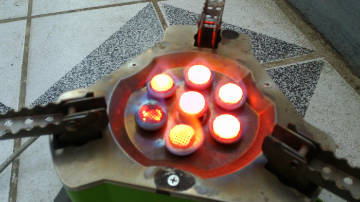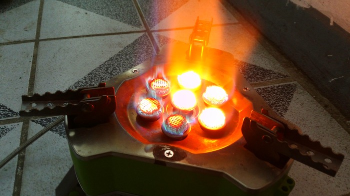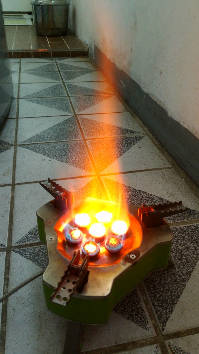 약불에서 가스가 고르질 못하지만 막 달아 오릅니다.