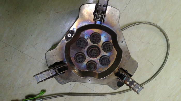 화구부분 풀어내니 안쪽에 노즐이 심긴 봉긋봉긋한 관들이 솟아있습니다.