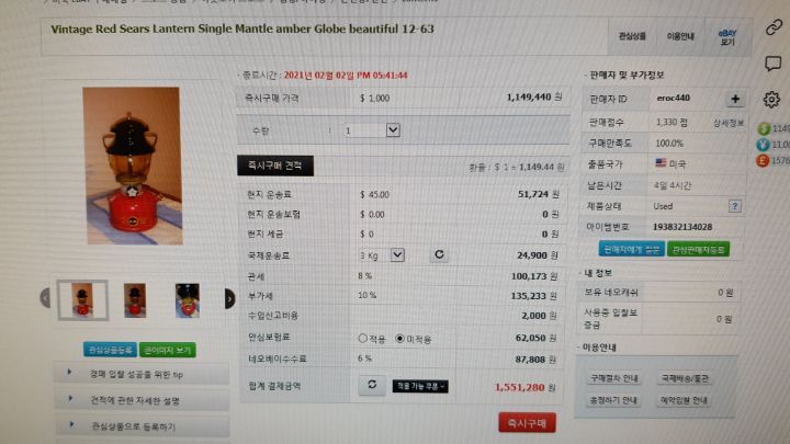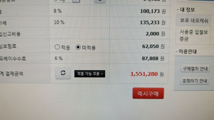 관.부가세, 운송비 등 부대비용 포함하면 족히 150만원은 될 거 같네요 ㅠㅠ