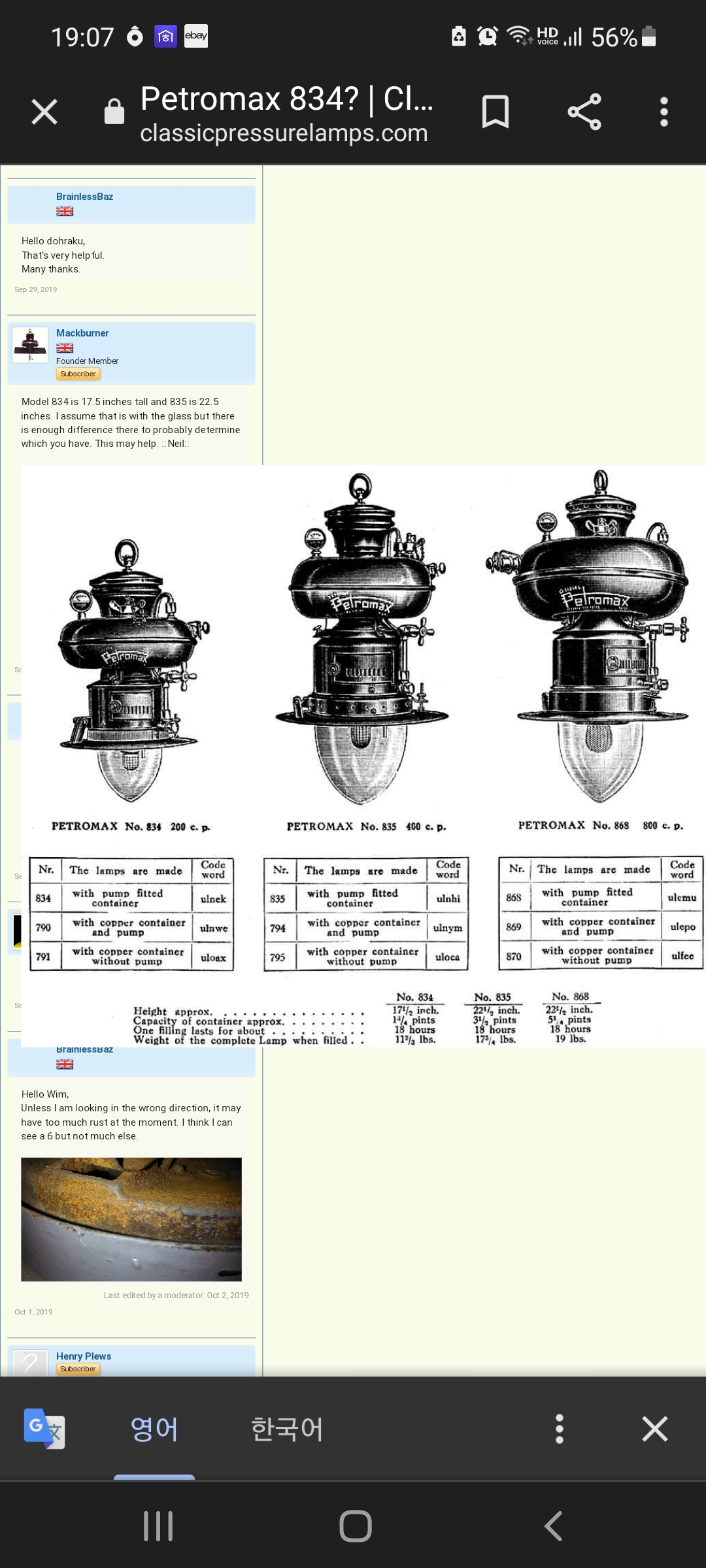 암튼 가운데 길다란 펌프는 아래 Petromax 834라는 행잉랜턴 것입니다.