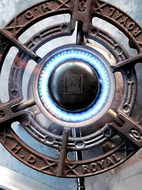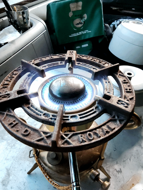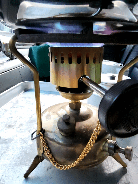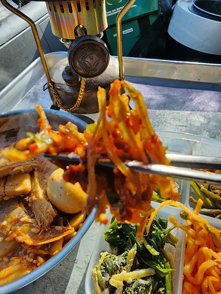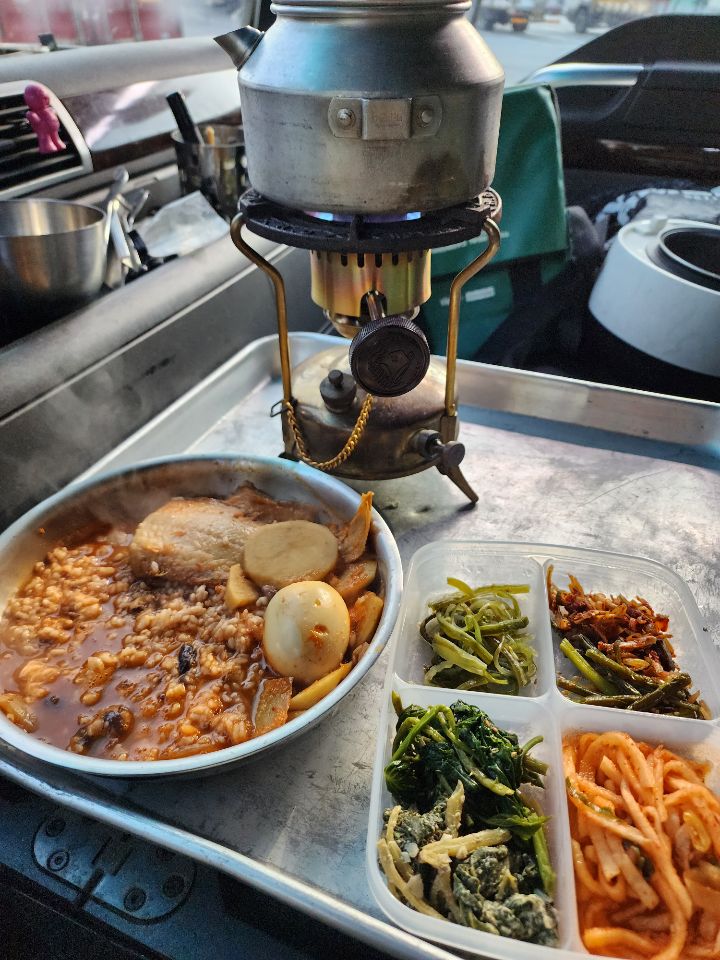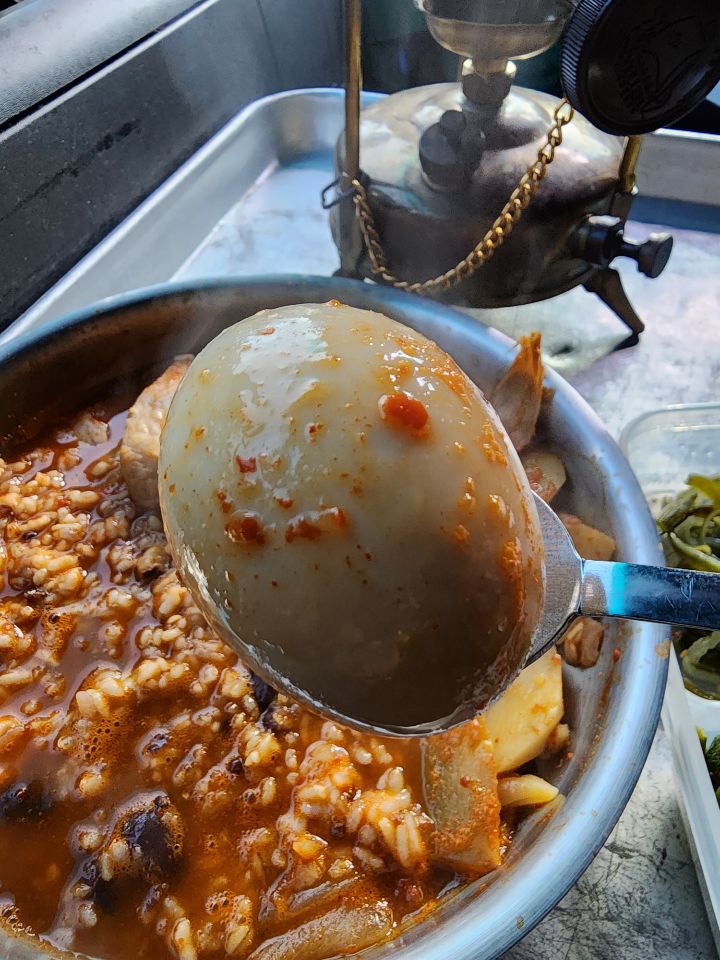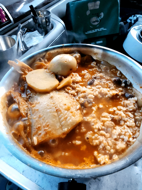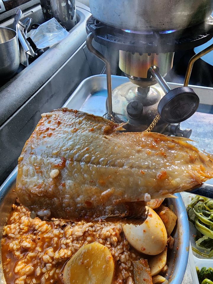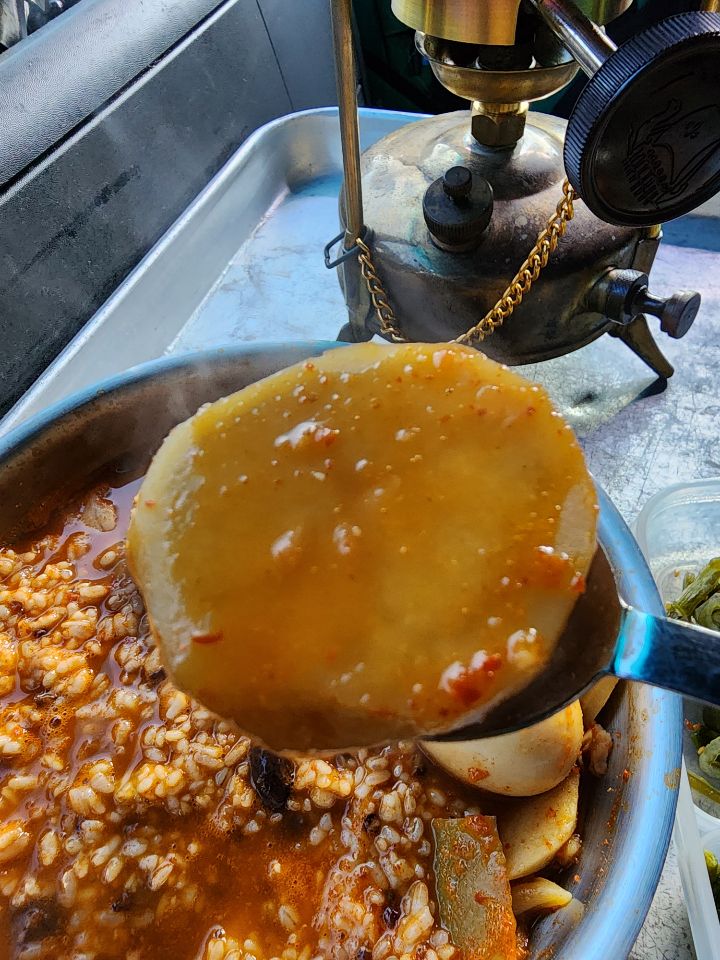 음... 화끈한 불꽃에 아침식사는 서대 조림을 데워 밥을 말아 간단히 해결 했네요! ㅎㅎㅎ
