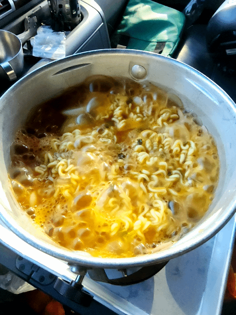캬하 멋진 빠나에 불꽃이 화끈하고 아침식사는 라면을 끓여 제껴 아주 맛나게 먹었습니다! ㅎㅎㅎ