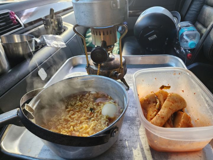 오며 건천 휴게소에서 잠시 쉬었다가 묻지마 빠나들에 모임인 거시기파의 행동대장으로 임명된 머시기 머쓰캐라 빠나에 불을 댕겨 아침식사를 해결 했습니다!