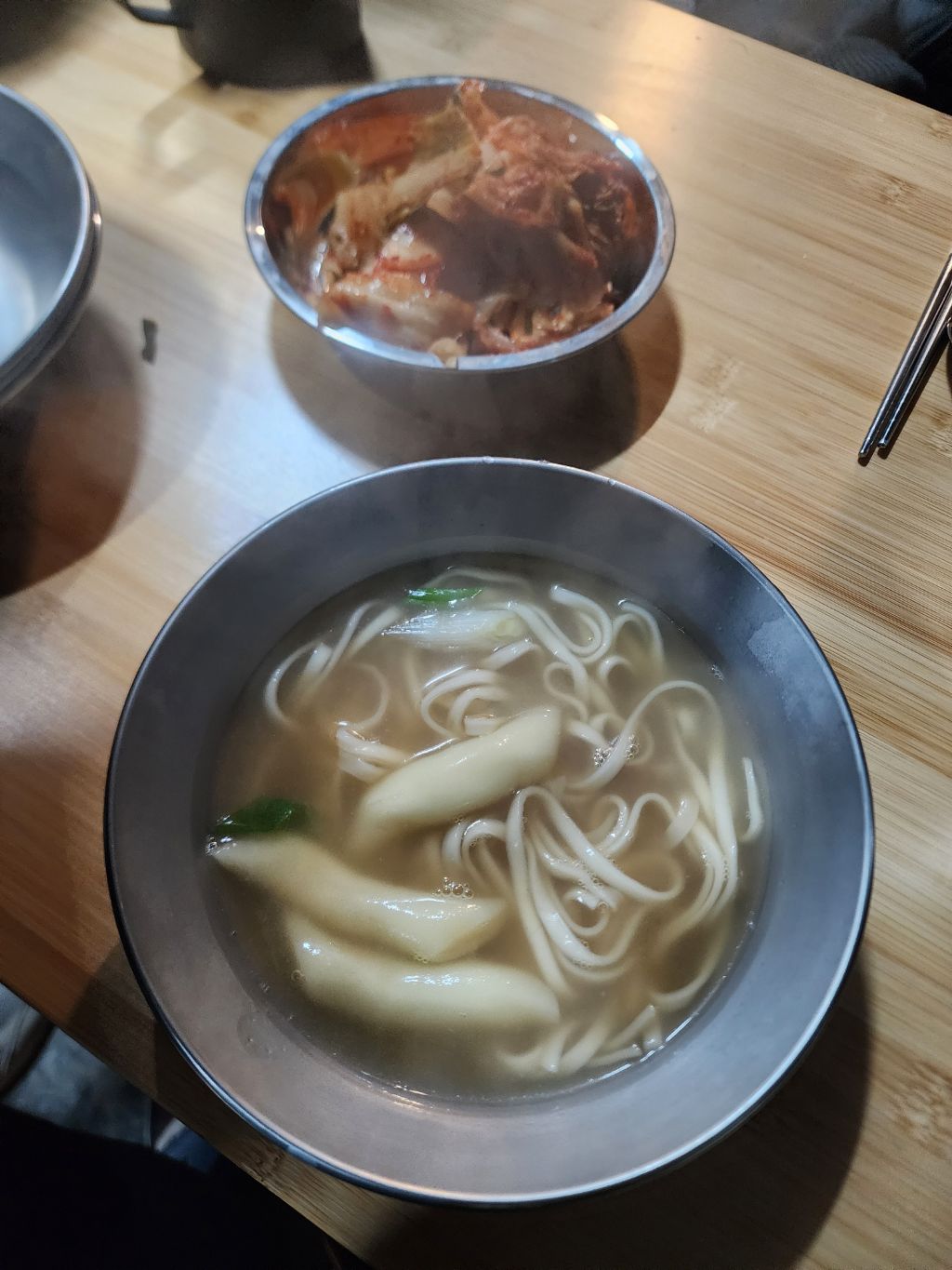 어제 먹다남은 어묵탕 국물과 닭한마리 국물로 칼국수를 끓여 제끼고요! ㅎㅎㅎ