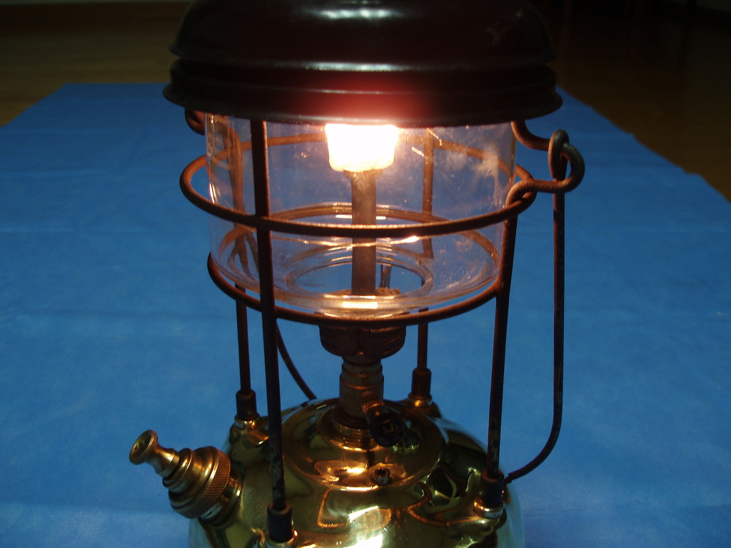 예열후 불 봅니다. 맨틀을 연습용으로 하니 쪼그라들어 불이 넘치네요.